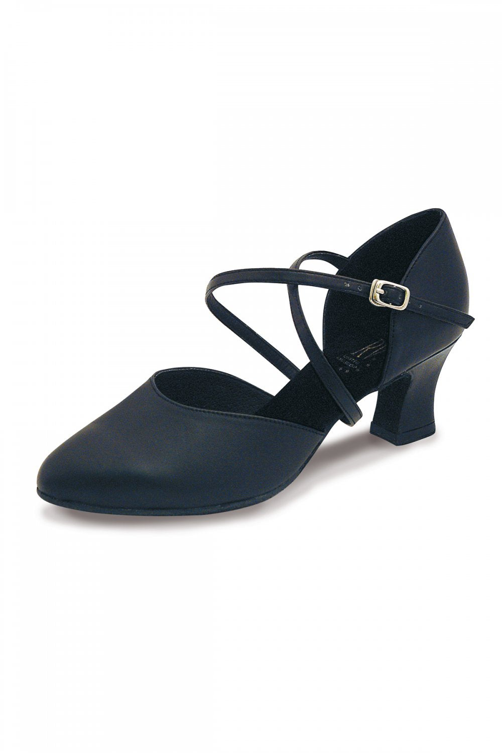 Anceta Ladies Ballroom/Latin shoes, with X-Straps, leather upper, 2.2" social heel, quick fasten buckle, leather lining, and super-flexi suede soles.