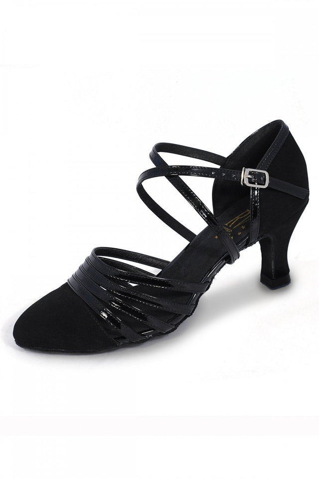 Ladies Nubuck and Patent Ballroom Shoe with closed toe. Featuring a 2" slim social heel. Super-flexi suede sole and quick fasten buckle.
